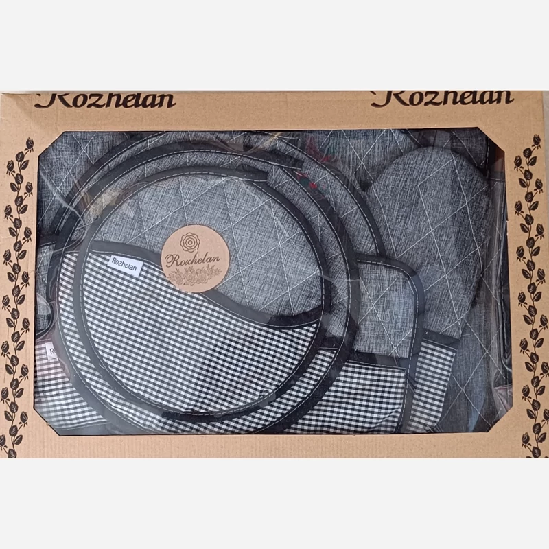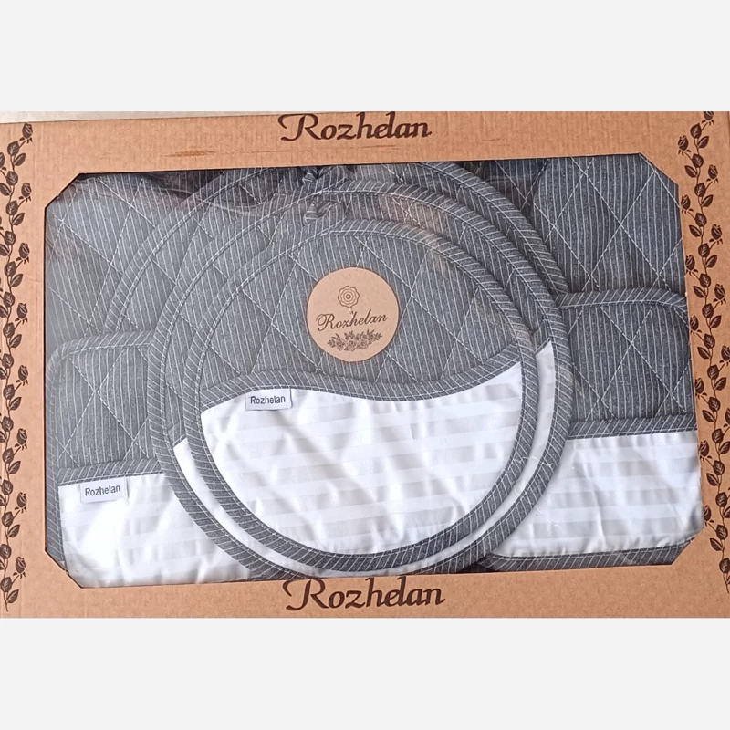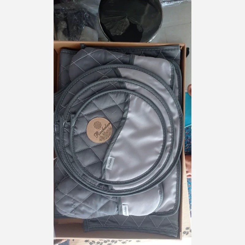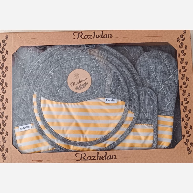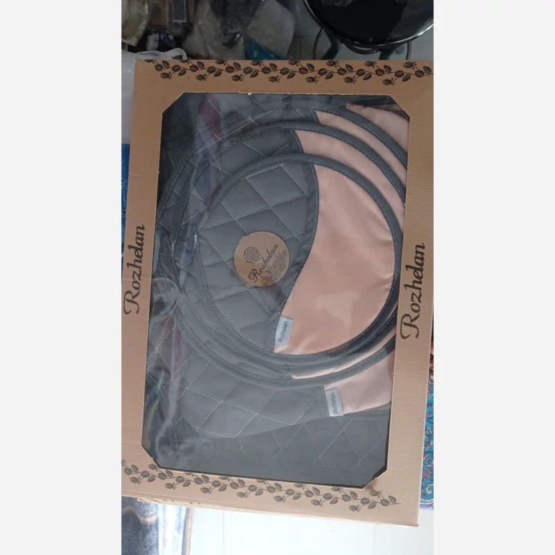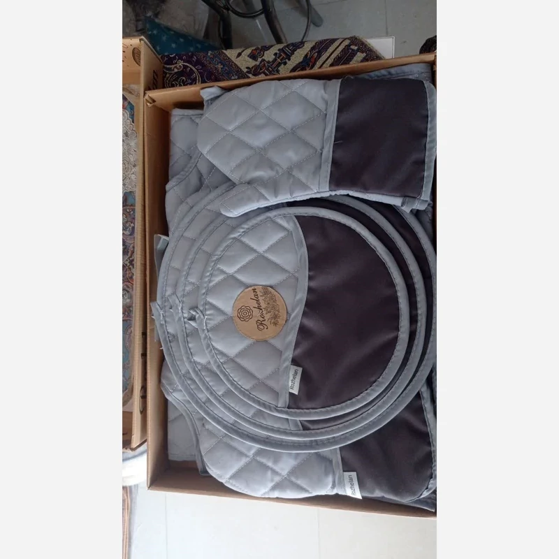 13تیکه (دوتا دستگیره، سه تا دمی ،دوتا دستکش، یک پیشبند ،یک نمگیر،دوتا دستگیره دسته قابلمه) دور کار نوار اریب دوزی شده همه کارها دورنگه