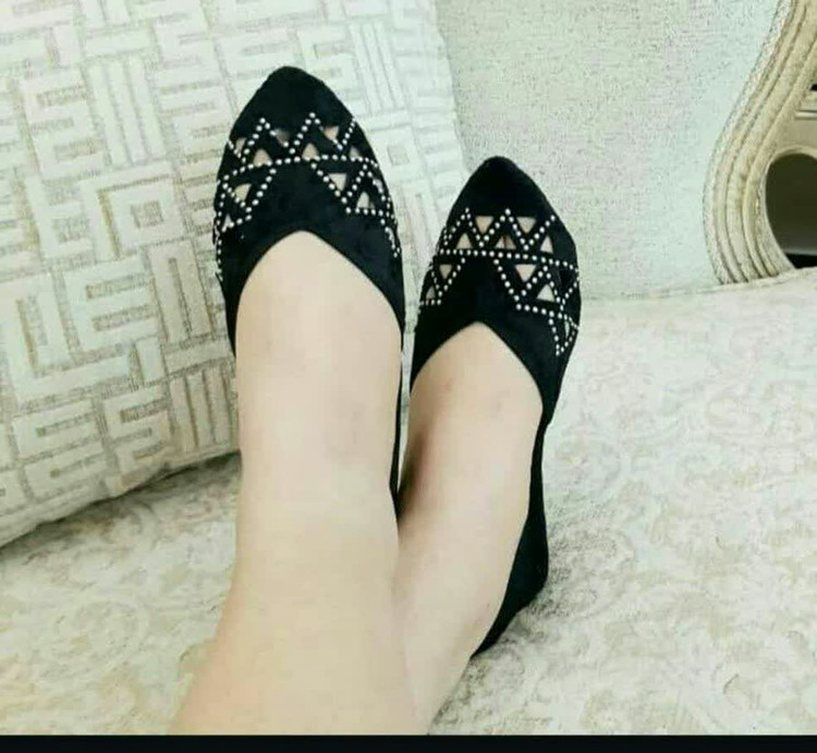 پاپوش کف چرم نوک تیز مخمل نگین دار😍